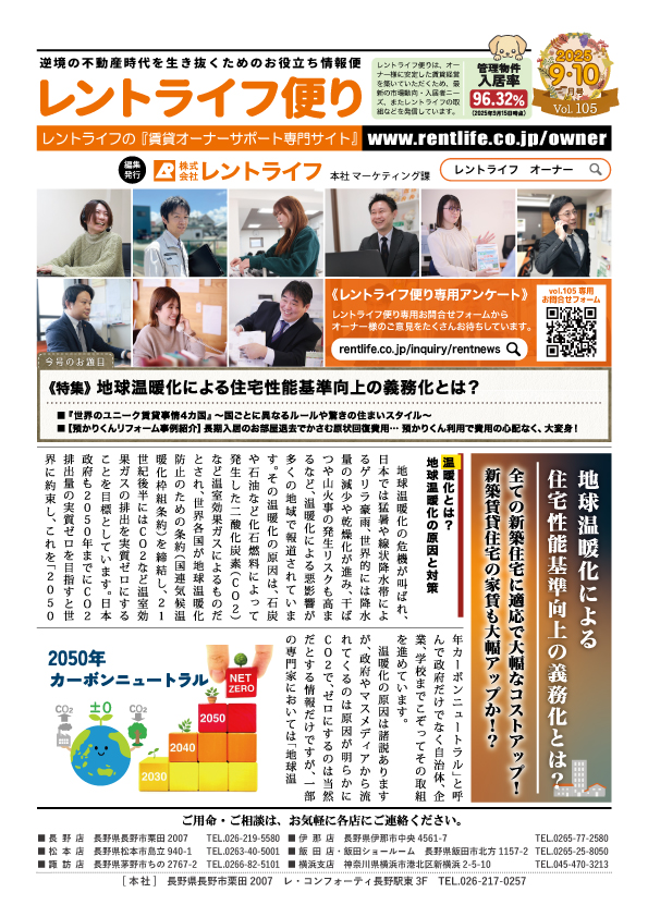 私たちレントライフの取り組みや今の賃貸市場動向など、家主様の賃貸経営に役立つ情報をお届けする賃貸経営者必読の情報誌です。